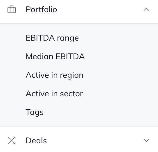 Deal Volume: Filter by the number of companies in their portfolio or deals completed