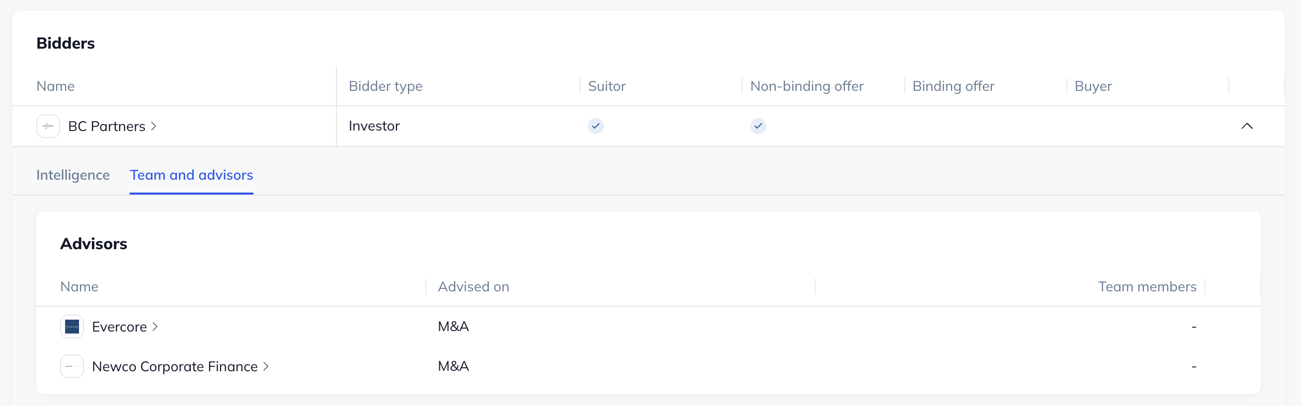 If you are interested in updating your role as an Advisor on any Deals on the platform, please reach out to your Customer Success Manager who can facilitate this process.
